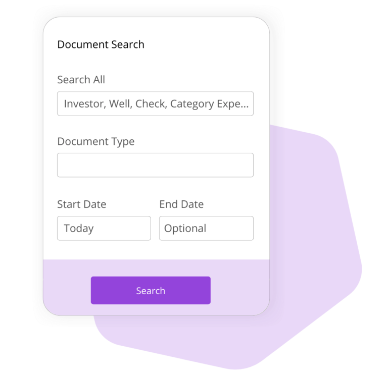 Once processed, all documents are available from any device. That way, Investor, Vendor, and Management questions can be answered immediately. Search for documents by Vendor, Well, Lease, Job, Rig, General ledger account, Category expense, AFE number, PO number, Check number and more. Whether it’s an accounts payable inquiry, a well history drill down, an AFE review or General Ledger inquiry any document is available at a clicks notice.