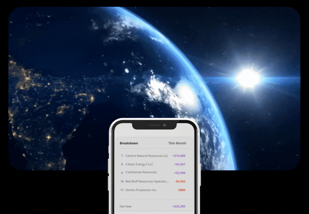 The central source of truth for your oil & gas investments, view all your meaningful data from a customizable dashboard or mobile app.