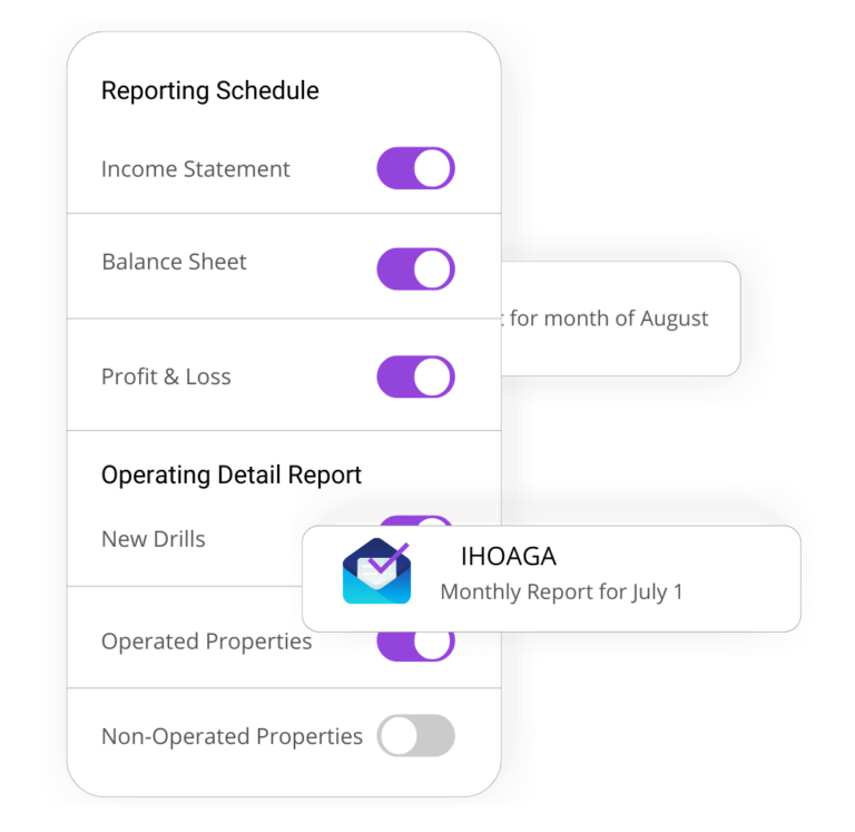 Unlike your bookkeeper or accountant, everything in IHOAGA is accessible on-demand through our dashboard on your desktop or from your smartphone. Not just financial statements either… we’re talking deep, customizable insights regarding your oil & gas investments and operations.